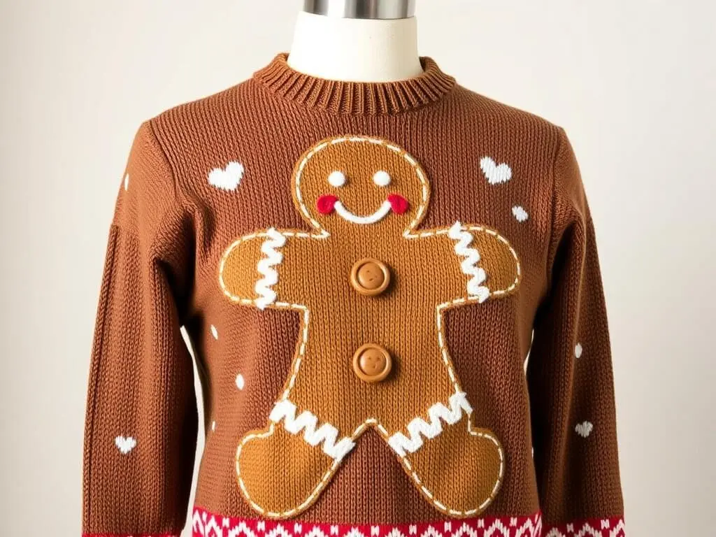 This charming gingerbread man jumper brings a sweet touch to your holiday wardrobe. The detailed design features textured elements that mimic icing and buttons, creating a three-dimensional effect that stands out from typical printed designs.