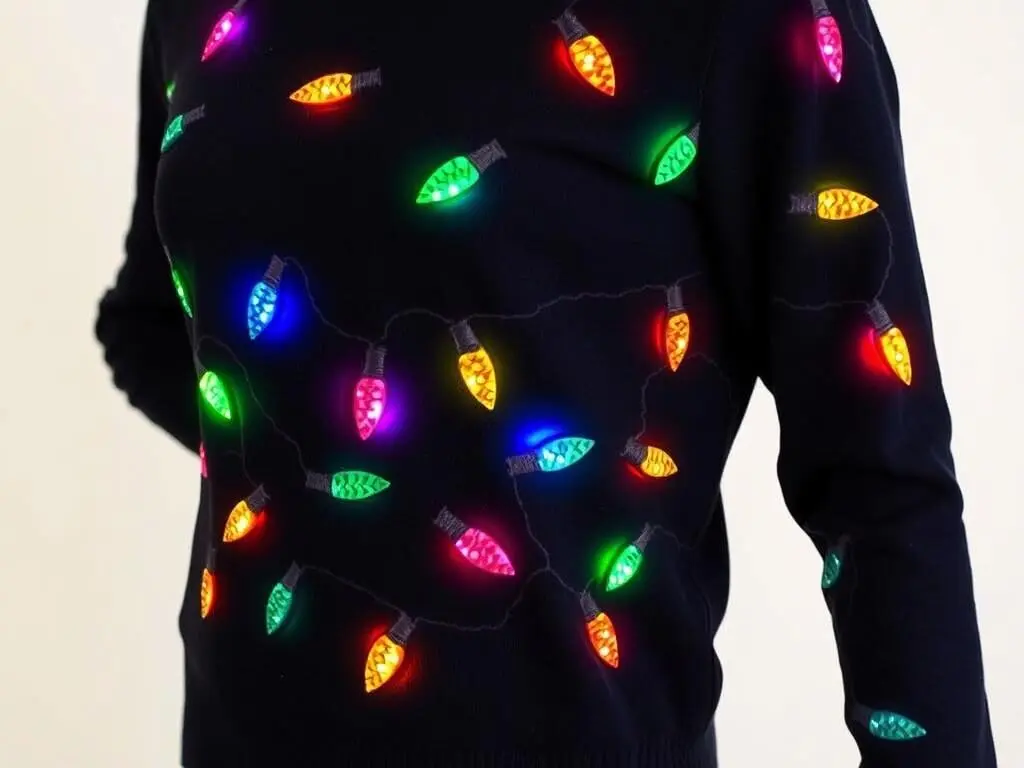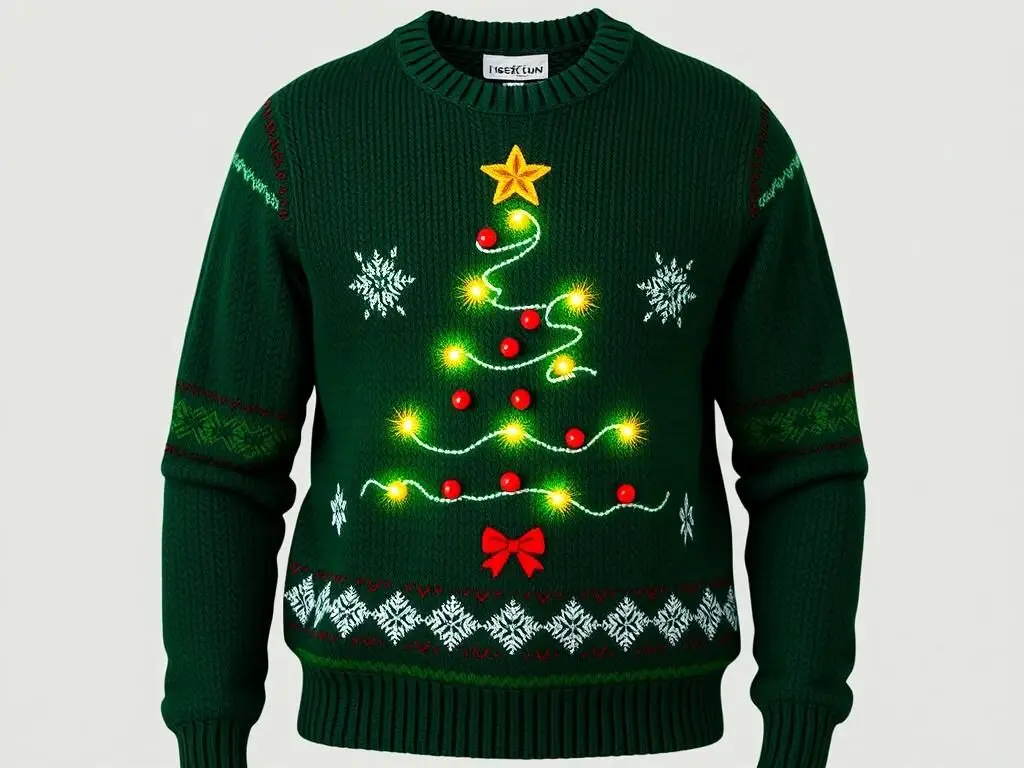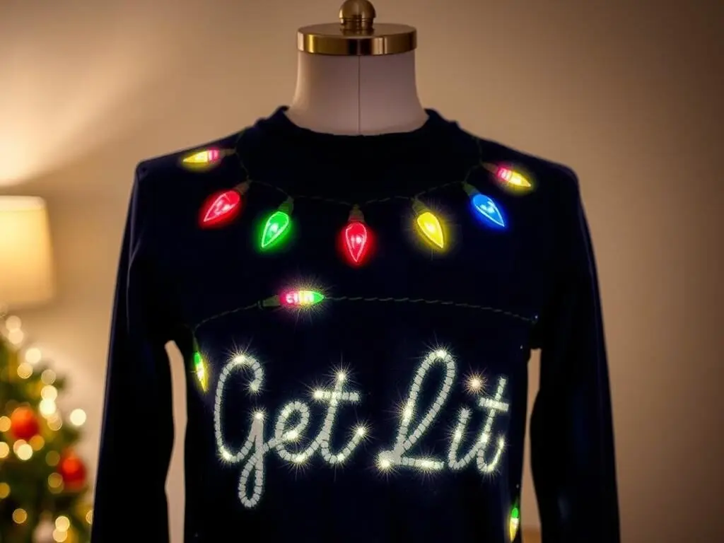 This eye-catching “Get Lit” jumper features actual working LED lights embedded in the design, making you the center of attention at any holiday event. The playful text and illuminated elements create a festive atmosphere wherever you go.