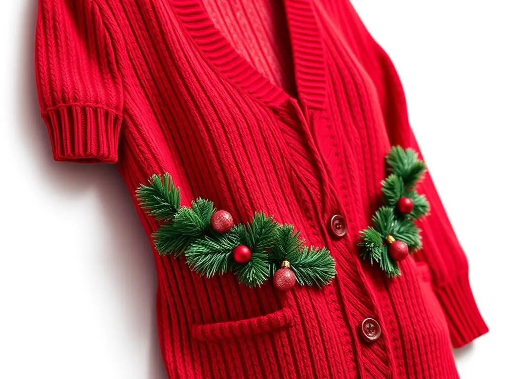 This show-stopping cardigan takes Christmas fashion to the next level with actual 3D garland decorations and miniature ornaments attached to the front. It’s the perfect choice for those who want to make a bold holiday statement.