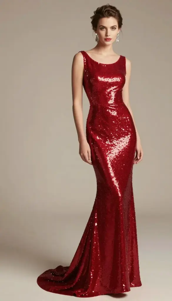For the ultimate glamorous Valentine Day outfit, a floor-length red sequin gown creates an unforgettable impression. The shimmering sequins catch the light beautifully while the rich red color embodies the romance of the occasion.