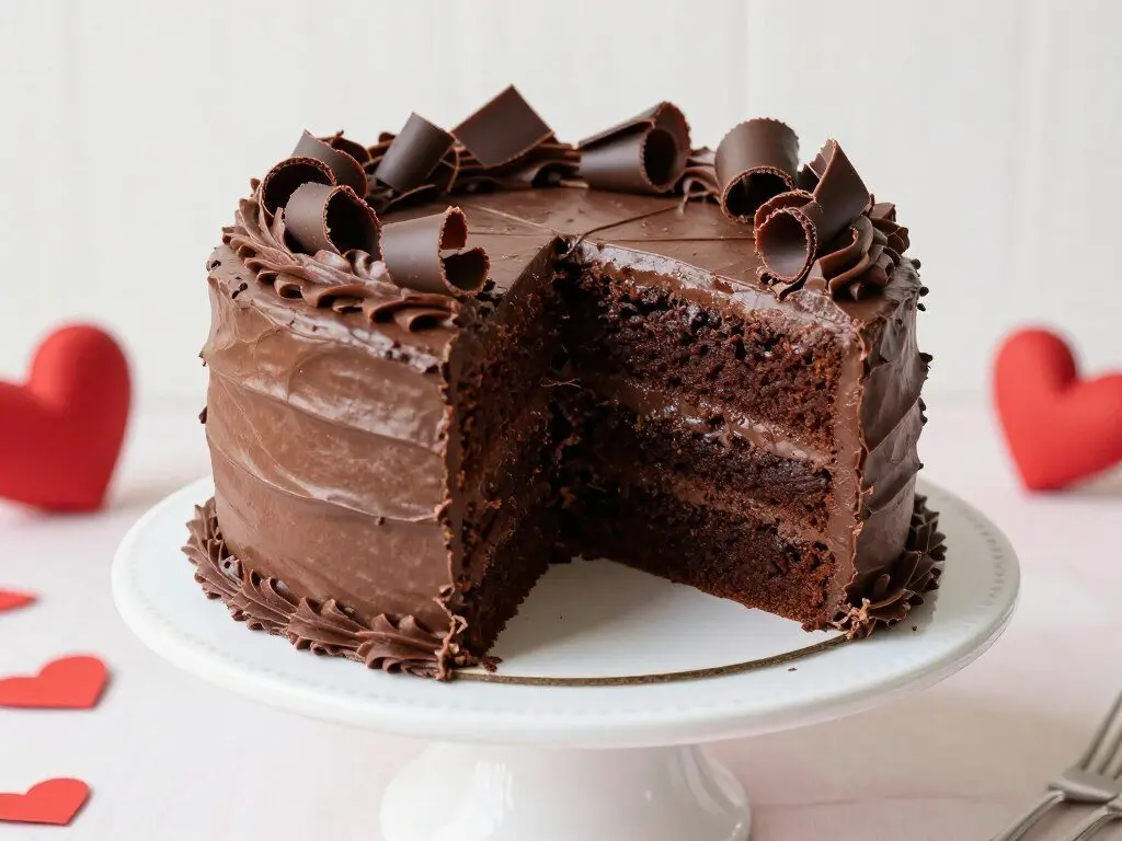 For the ultimate chocolate lover, this rich and fudgy chocolate cake is the perfect Valentine’s Day indulgence. With deep chocolate flavor in every component—from the moist cake layers to the silky ganache and chocolate curl decorations—it’s a chocolate dream come true. This top-rated recipe never disappoints!