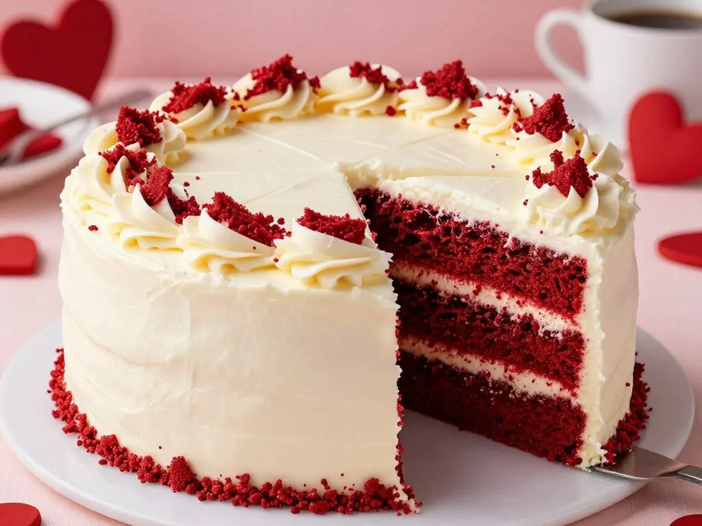 Red velvet cake has become a modern classic for good reason. With its vibrant color and subtle chocolate flavor, this cake is the epitome of Valentine’s Day desserts. Topped with cream cheese frosting, it strikes the perfect balance between sweetness and tanginess for a truly sophisticated treat.