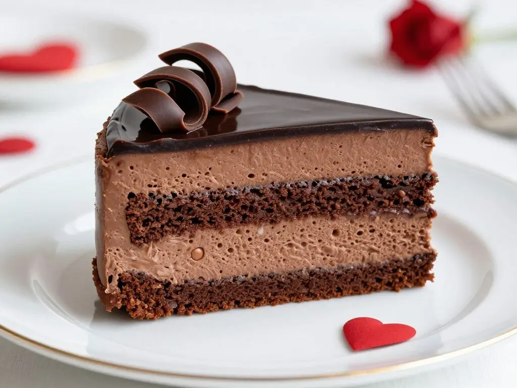 This exquisite dessert features three distinct chocolate layers: a rich chocolate cake base, velvety chocolate mousse middle, and a shiny chocolate ganache topping. The contrasting textures create an unforgettable chocolate experience that’s perfect for serious chocolate lovers.