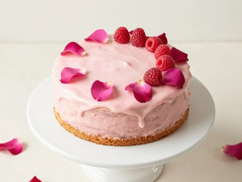 This gorgeous rosewater and raspberry sponge cake combines delicate floral notes with the bright tartness of fresh raspberries. Topped with elegant pink icing and scattered with rose petals, it makes for a stunning Valentine’s Day centerpiece that’s surprisingly easy to create.