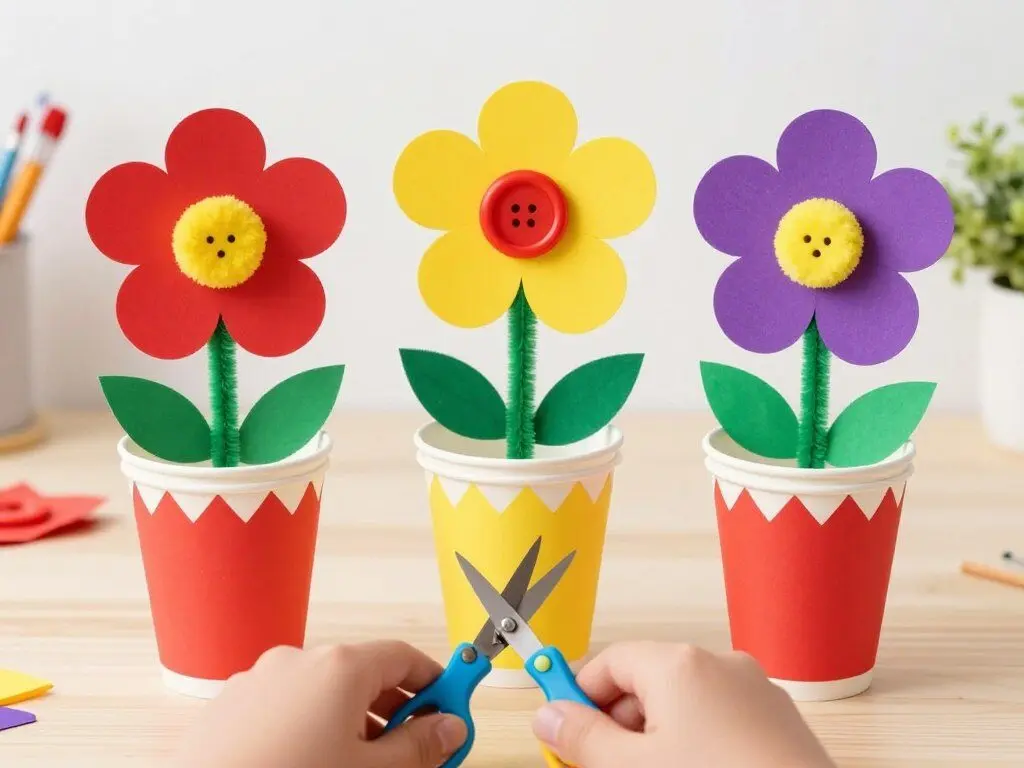 Cut paper cups into petal shapes around the rim, leaving the base intact. Paint cups in vibrant flower colors like red, yellow, or purple. Once dry, glue a green craft stick or pipe cleaner inside as a stem.