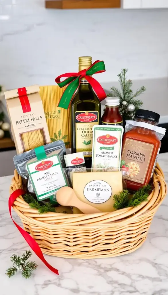 Transport them to Italy with premium pasta, artisanal olive oil, specialty tomato sauces, and Italian herbs. Include parmesan cheese, balsamic glaze, and perhaps a bottle of Chianti. A wooden pasta spoon and authentic recipe cards complete this Mediterranean-inspired hamper.