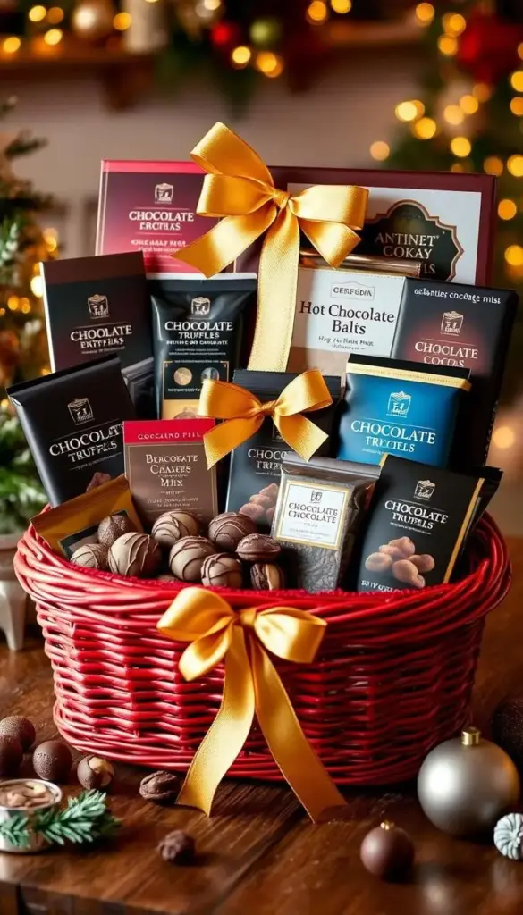 Indulge the chocolate lover with a selection of premium chocolates from around the world. Include dark, milk, and white varieties, along with truffles, hot chocolate mix, and chocolate-covered nuts. Add chocolate-dipped cookies and a festive mug for the ultimate cocoa experience.