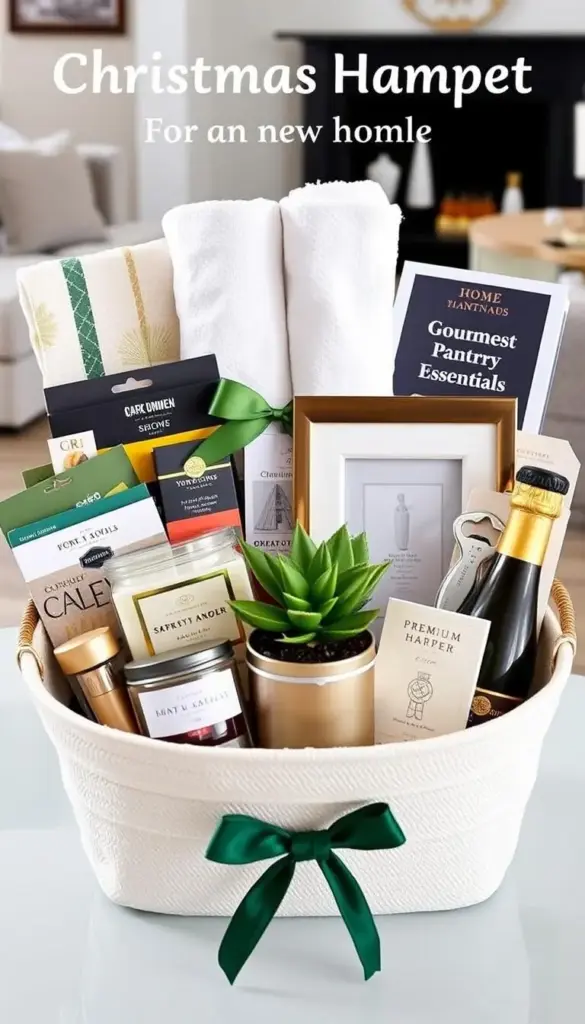 Welcome them to their new space with quality kitchen towels, gourmet pantry staples, and a scented candle. Include a picture frame, small houseplant, and perhaps a quality bottle opener. This practical hamper helps turn a house into a home during the holiday season.