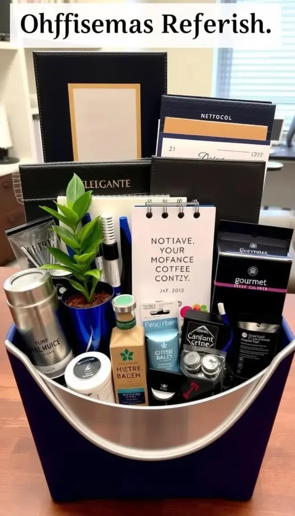 Upgrade their workspace with elegant desk organizers, a quality notebook, and premium pens. Include a desk plant, motivational calendar, and gourmet coffee or tea. Tech accessories and stress relief items make this professional hamper both practical and thoughtful.