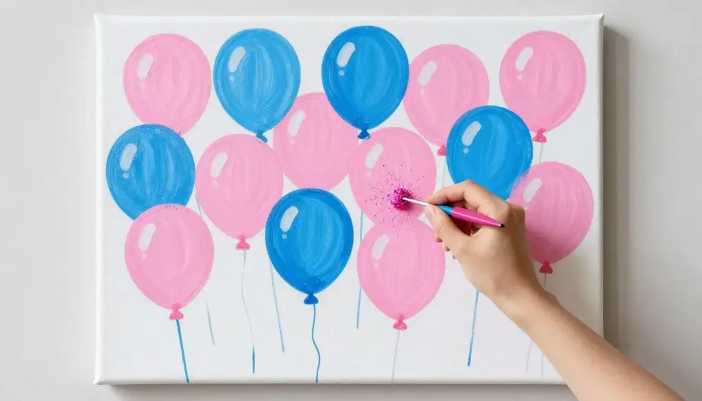 Fill balloons with either pink or blue paint and attach them to a canvas. Throw darts or use a pin to pop the balloons, creating a unique piece of artwork for your nursery while revealing your baby’s gender.
