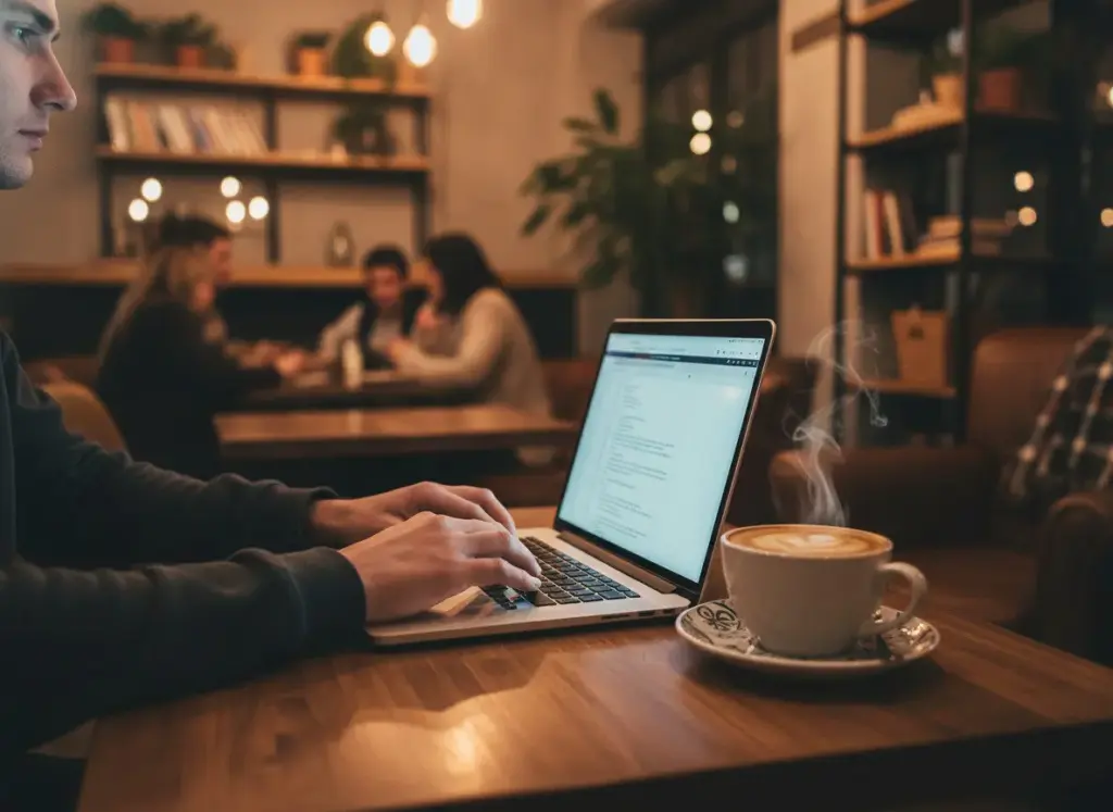 Cafe photos capture the social aspect of remote work. Position yourself at a small table with your laptop open, a coffee cup nearby, and perhaps a notebook. The background should be slightly blurred but still show the cafe ambiance. These shots work best during off-peak hours when cafes are quieter.